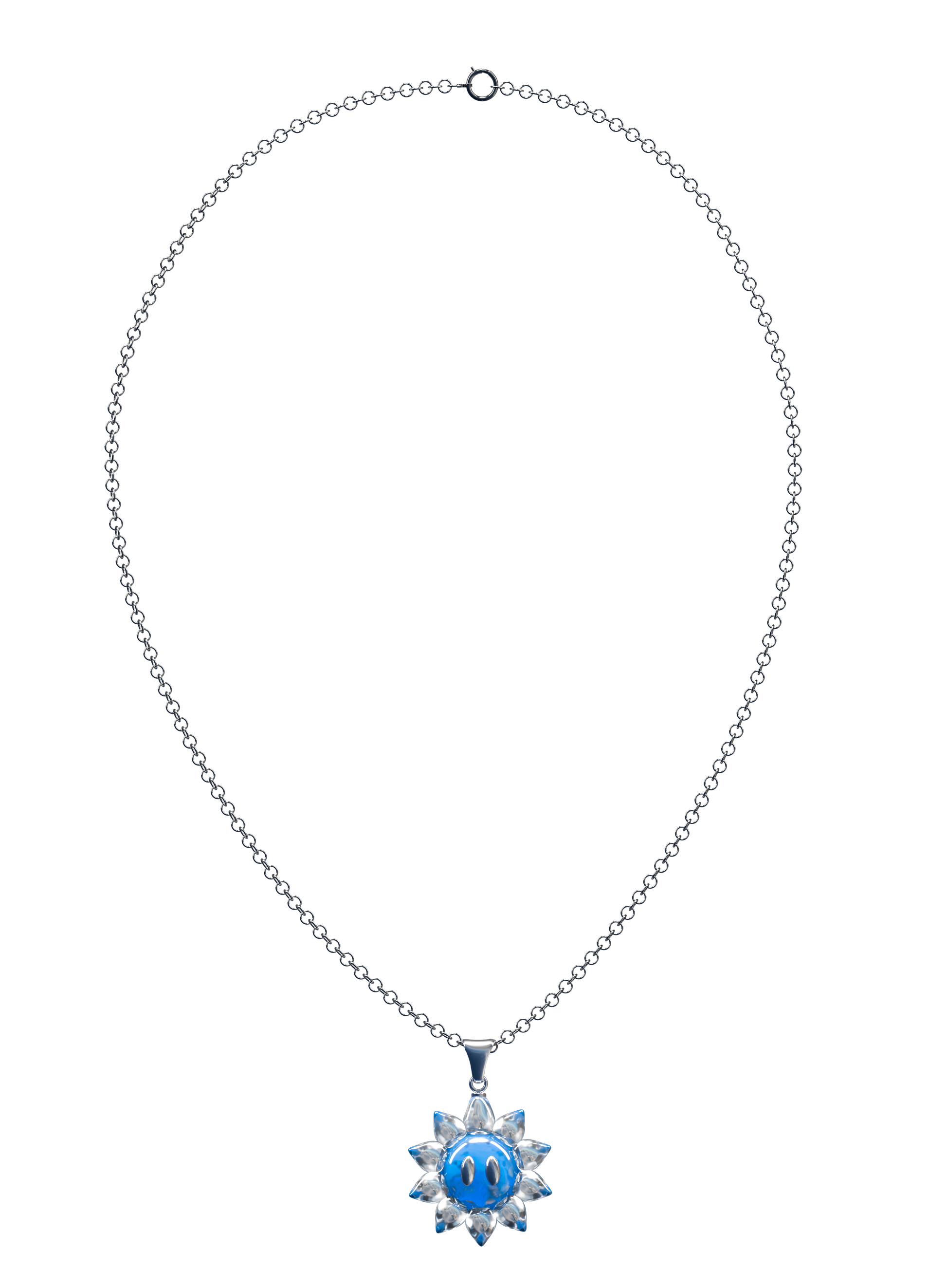 Le collier SUNFLOWER CRYSTAL est conçu en argent 925 et composé d'une fleur à l'éffigie de la collection en resine epoxy possèdant des paires de yeux en argent 925.
