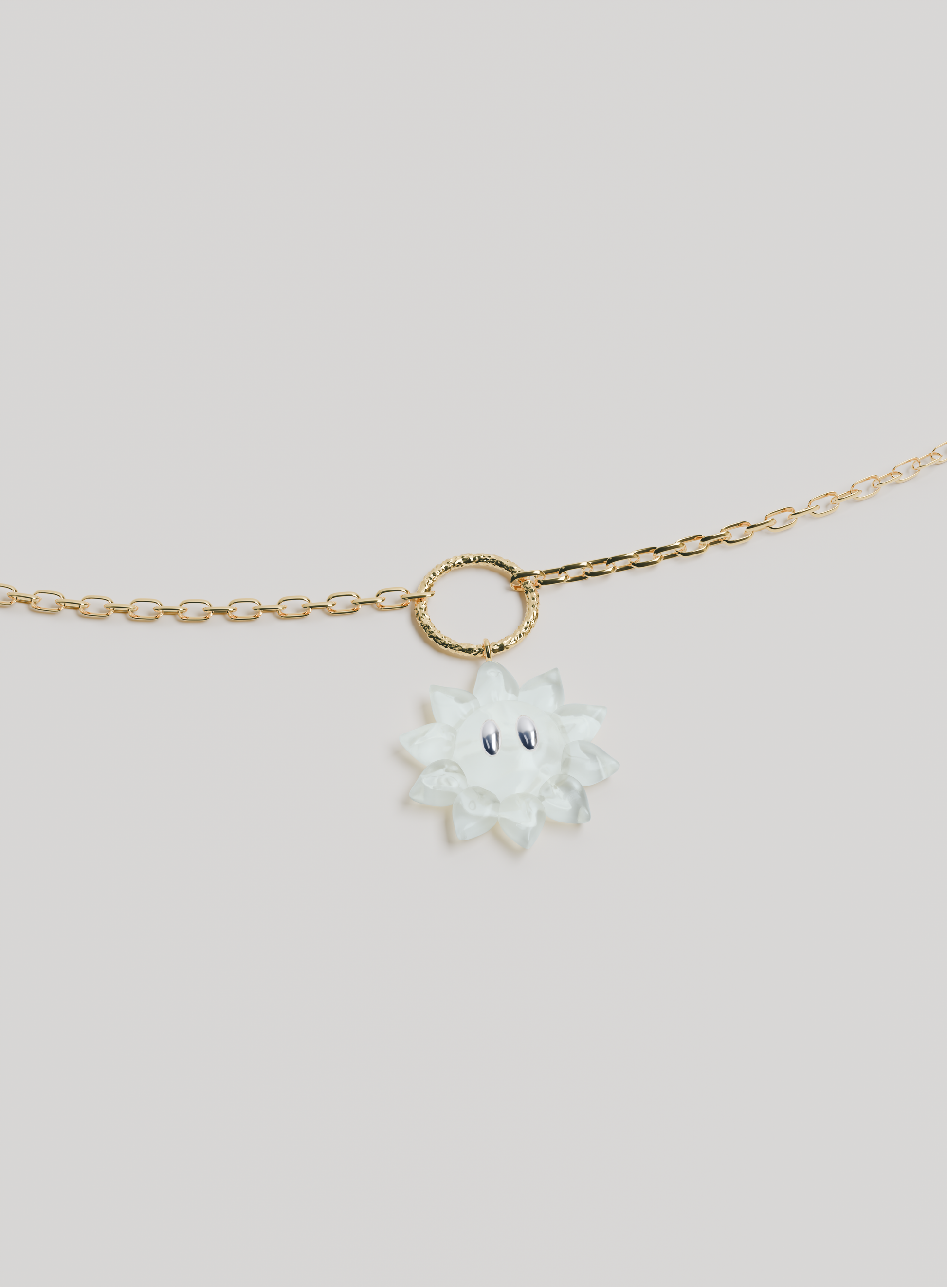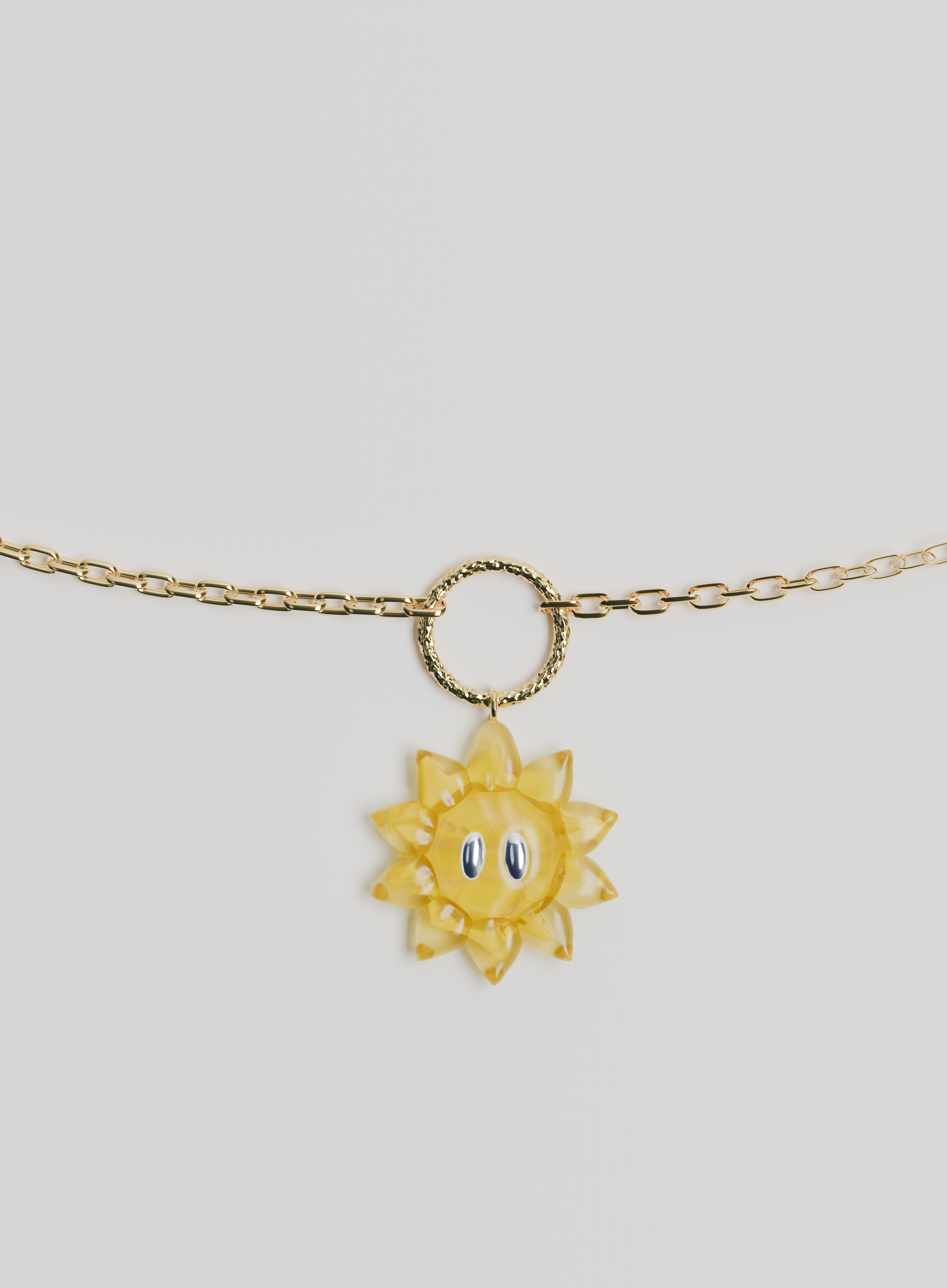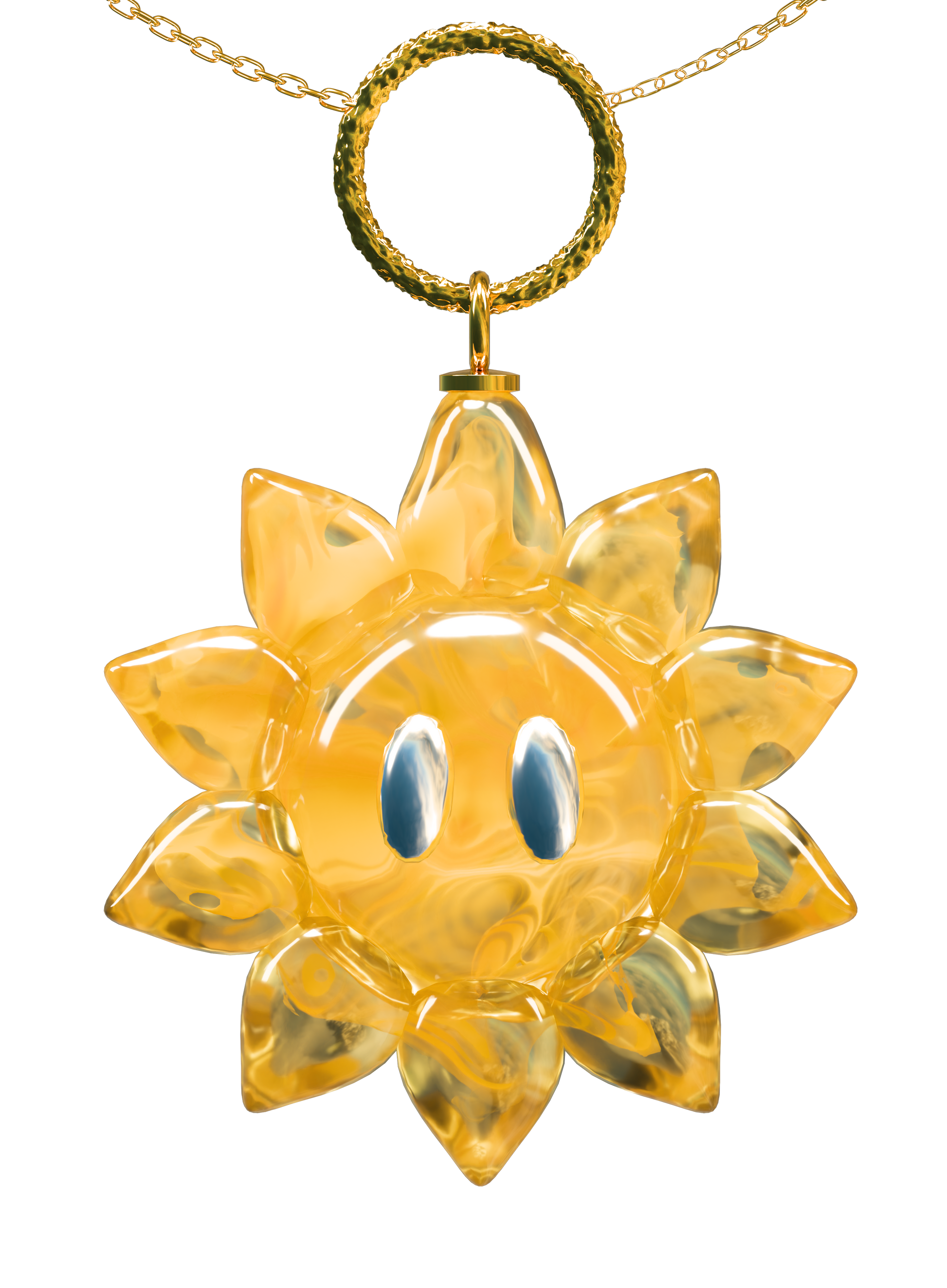 Le collier SUNFLOWER est conçu en argent 925 plaqué or 18 carrat et composé d'une fleur à l'éffigie de la collection en resine epoxy possèdant des paires de yeux en argent 925.